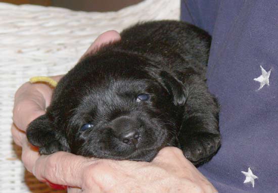 Yellow Girl at 19 days LOVES being held by Grandma!
