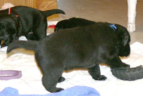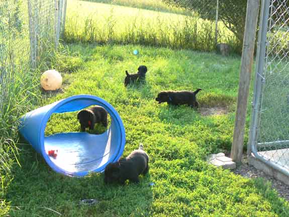 Puppies at almost 6 weeks - having LOTS of fun in the puppy yard!