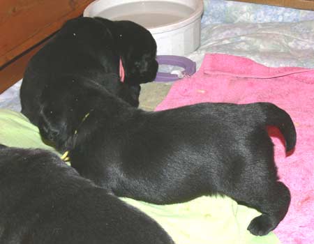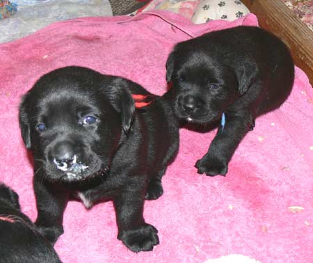 5.5 weeks: (left) Blue Boy - (right) Peach Girl & Blue Boy