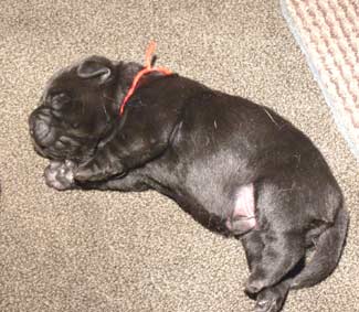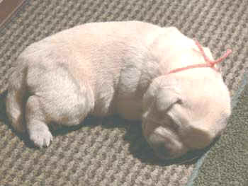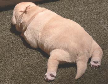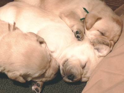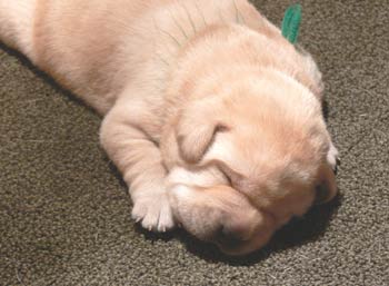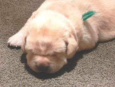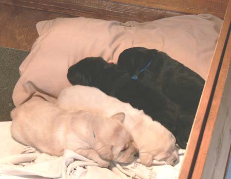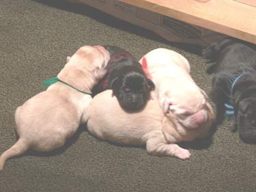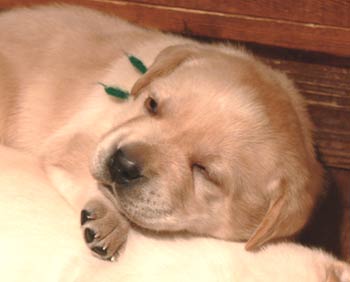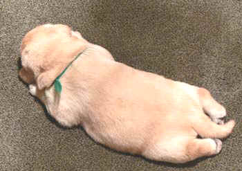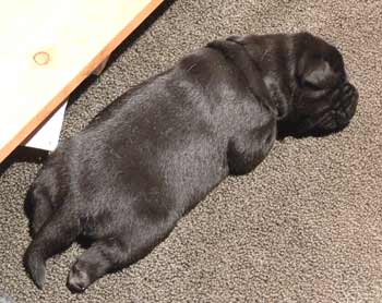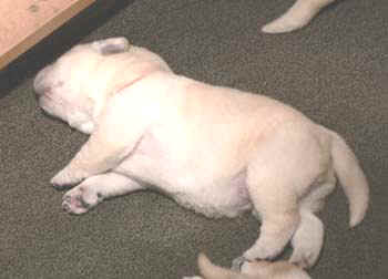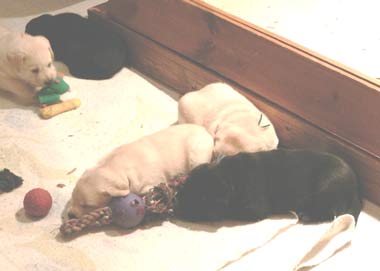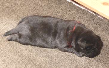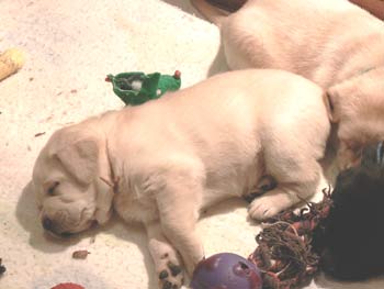 "Crashing" after a romp in the whelping room - 4.5 weeks