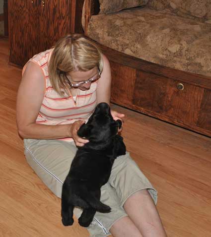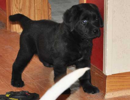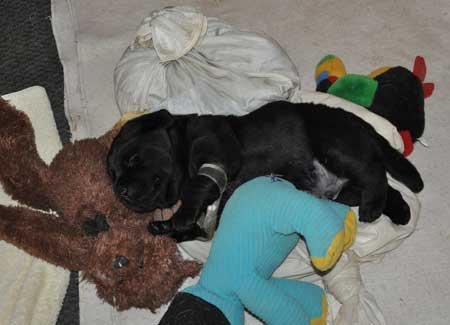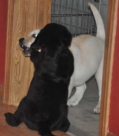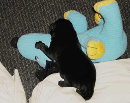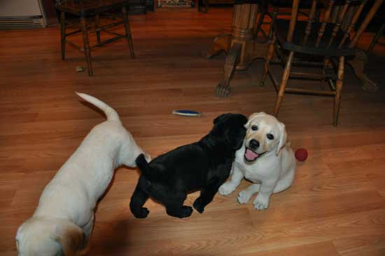 Fearlessly playing with the older puppies at 7 weeks (they're 3-4 weeks older,