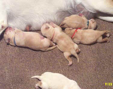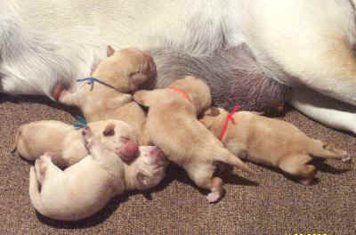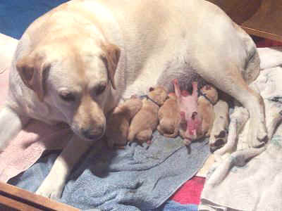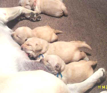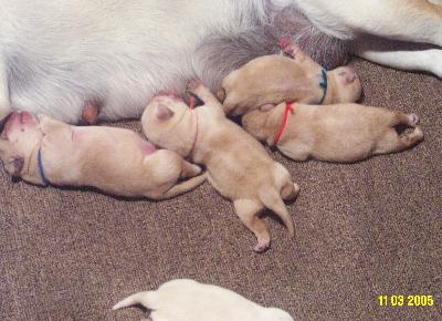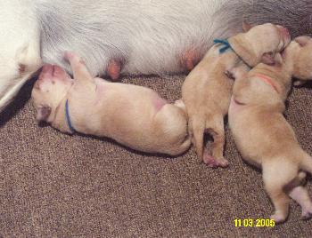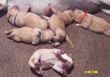 Yellow litter born October 30, 2005 (Devonshire Blackthorn Saffron x Tealwood's Minuette En Bleu)