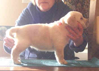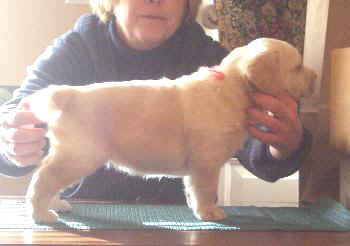I just tried stacking a couple puppies at 5 weeks of age (pictures below). Actually they cooperated pretty well for this age! More stacked pictures will be taken at 7.5 to 8 weeks of age.