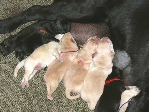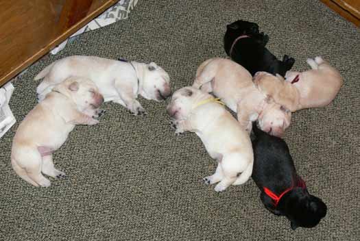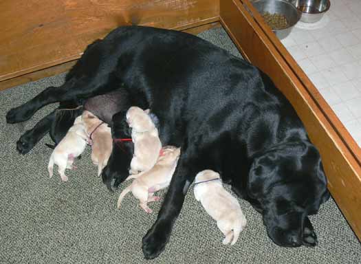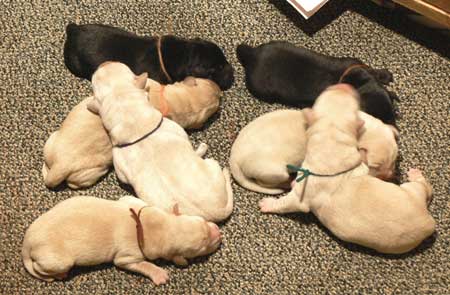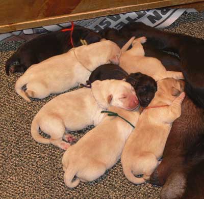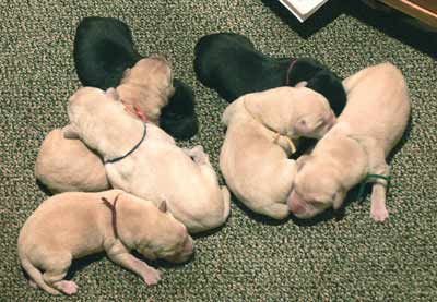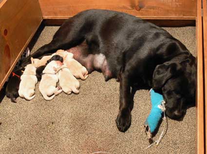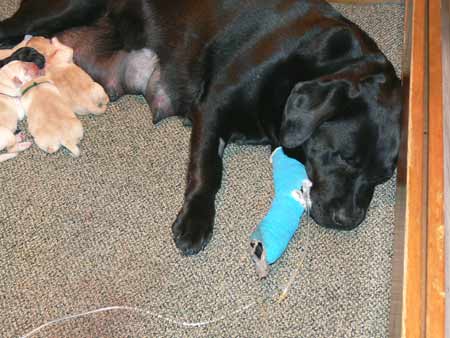 tired but happy to be home with her 7 babies - the evening of