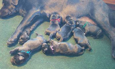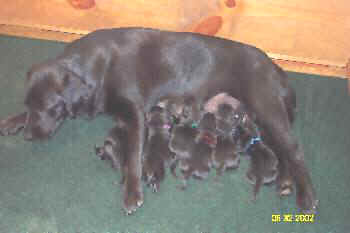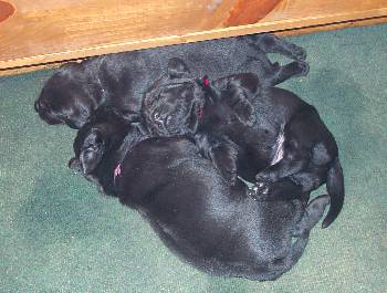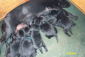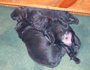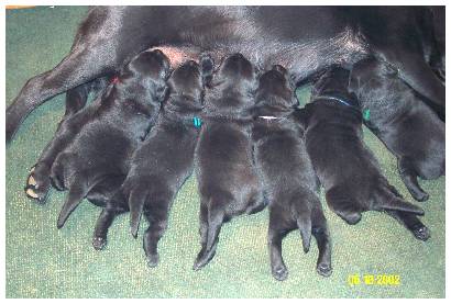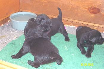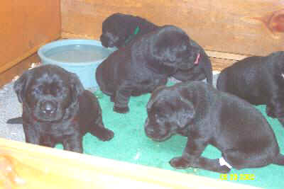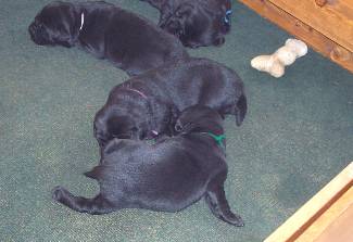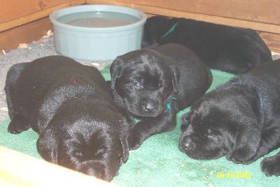 Puppy @ 4 weeks Red Boy, Turquoise Girl & Blue Boy @ 4 weeks