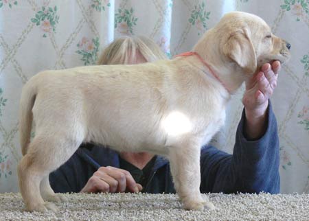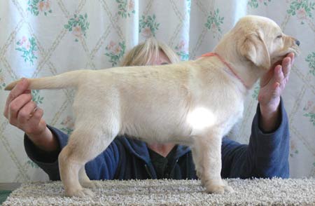 is a very well balanced puppy, correct angulation front and rear, strong