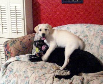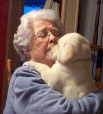 Major being comforted by Grandpa Wally - 12/28/02 |
