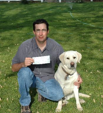 owner/handler Chris Carmona holding the $500 prize check.