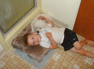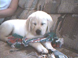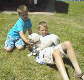 - Yellow Female meeting the llamas @ 3.5 mos.