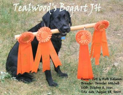 attained his AKC Junior Hunt title 8/24/03, under 2 years of age,
