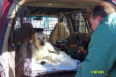 - Yellow female @ 8 weeks saying goodbye to mom