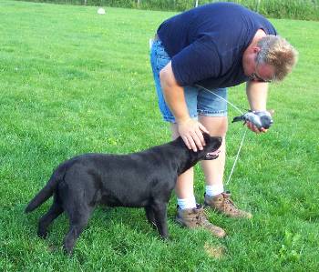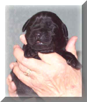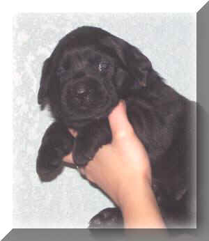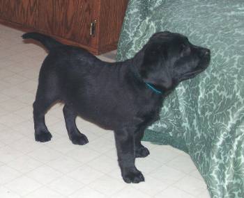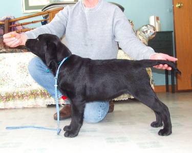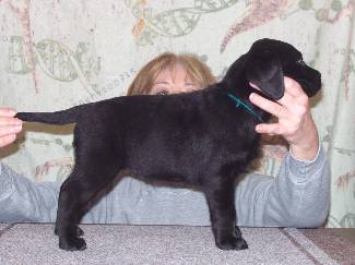 is lovely puppy with outstanding (correct) blue-black coat, topline, nice angles,