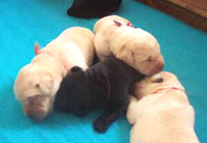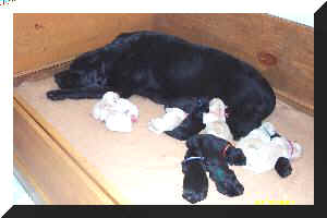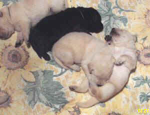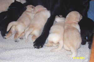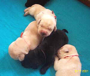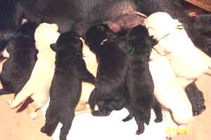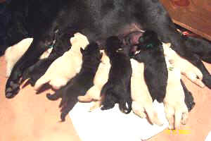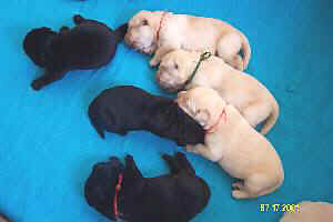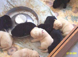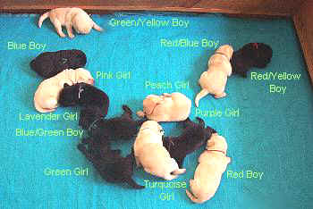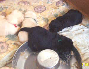 Black Pups - 3.5 Weeks Green Girl - 3.5 Weeks