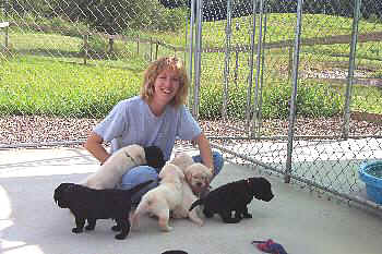 First Day in Indoor/Outdoor Kennel with Becky - 4.5 Weeks "And we're all eating dry puppy food like the big kids too!"