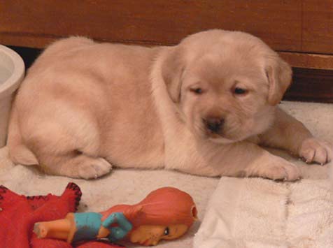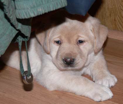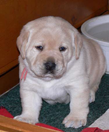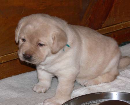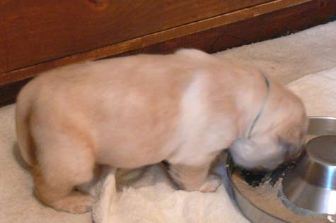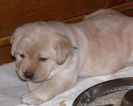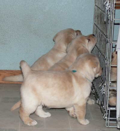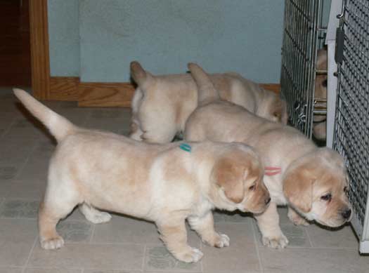 Pups visiting the big dogs! - 5.5 weeks (Turquoise Girl in front)