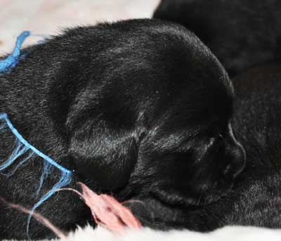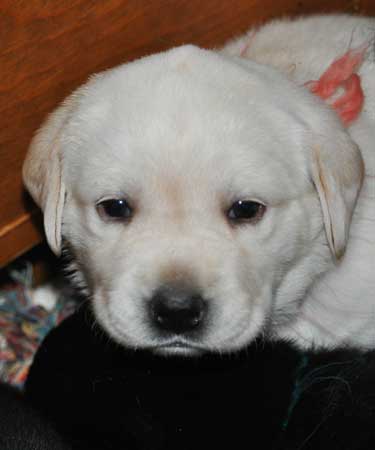3.5 weeks (left) Puppies eating - (right) Blue Boy