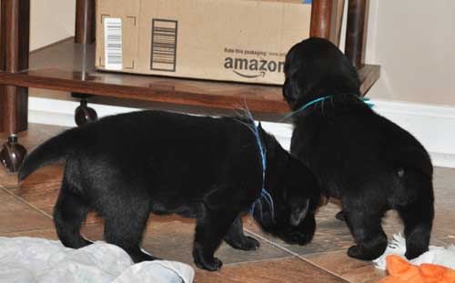 8 weeks: (left) Burgundy Boy - (right) Turquoise Girl
