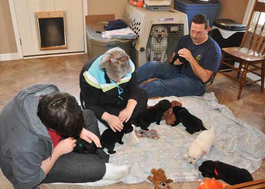 The puppies having fun with the Lett family at 2 days shy of 6 weeks