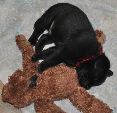 This time little Red Boy claimed the bear! SO cute!!! (4 weeks)