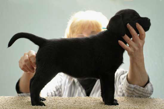 Burgundy Boy at 4 weeks ... thinks he's a show dog!